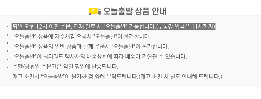 ´çÀÏÃâ°í »óǰ ¿Ü ÁÖ¹® ÈÄ Á¦ÀÛÁÖ¹®Àº ±³È¯/¹ÝǰÀÌ ºÒ°¡ÇÕ´Ï´Ù.